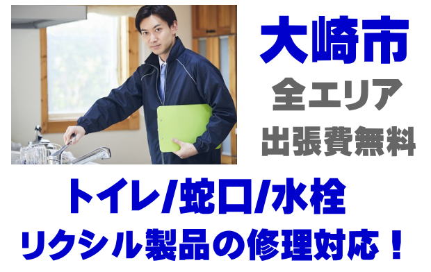 大崎市でLIXIL製(旧INAX)トイレの修理業者をお探しなら当社までお気軽にお問い合わせください。蛇口の水漏れ、シャワーの故障、トイレ便器の水漏れ、タンクの故障、便座の修理などリクシル製、イナックス製に関するトラブルなら何でもご相談ください。